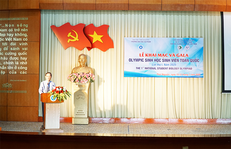Ngày 10/7/2020, tại Hội trường C1, Trường Đại học Sư phạm – Đại học Thái Nguyên đã phối hợp với Hội các ngành sinh học Việt Nam tổ chức lễ Khai mạc Olympic Sinh học sinh viên toàn quốc lần thứ I năm 2020. Buổi lễ vinh dự đón tiếp các đại biểu về tham dự: GS.TS Lê Trần Bình, Chủ tịch Hội các ngành Sinh học Việt Nam và đại diện lãnh đạo các đơn vị trực thuộc Hội; đại diện lãnh đạo, cán bộ giảng viên chuyên trách và thí sinh dự thi đến từ 11 trường đại học, học viện. Phía Trường Đại học Sư phạm – Đại học Thái Nguyên có PGS.TS Mai Xuân Trường, Uỷ viên Ban Thường vụ Đảng ủy Đại học Thái Nguyên, Phó Bí thư Đảng ủy, Hiệu trưởng, Trưởng banTổ chức Hội thi; PGS. TS Hà Trần Phương – Bí thư Đảng ủy, Phó Hiệu trưởng Nhà trường; TS. Từ Quang Tân, Uỷ viên Ban Thường vụ Đảng ủy, Phó Trưởng phòng Đào tạo; đại diện lãnh đạo và cán bộ chuyên trách các đơn vị và sinh viên tham gia dự thi.