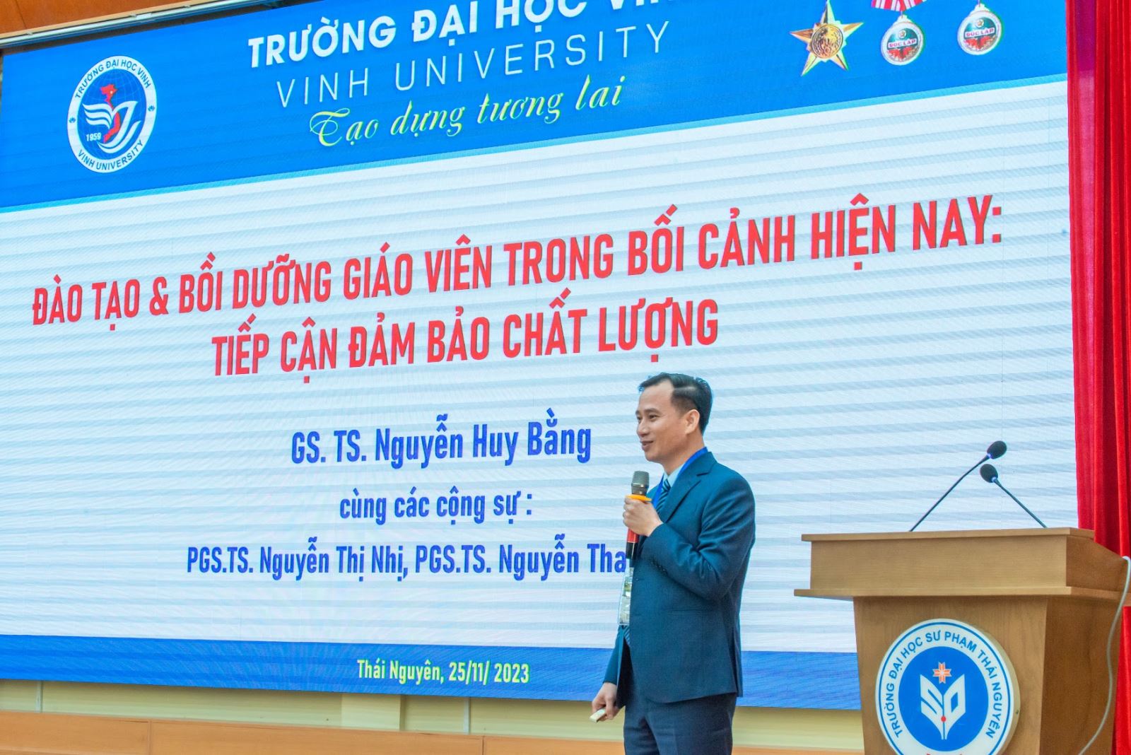 GS.TS Nguyễn Huy Bằng, Hiệu trưởng Trường Đại học Vinh trình bày báo cáo tại Phiên toàn thể